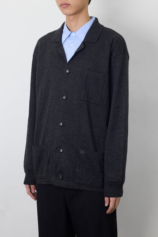 PEDORO DEL HIERRO GRAY WOOL KNIT JACKET MADE IN SPAIN