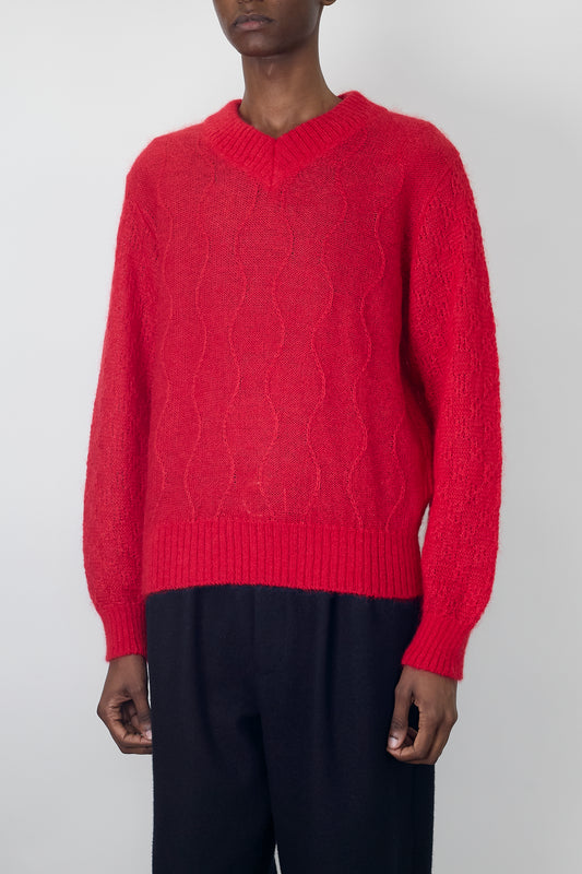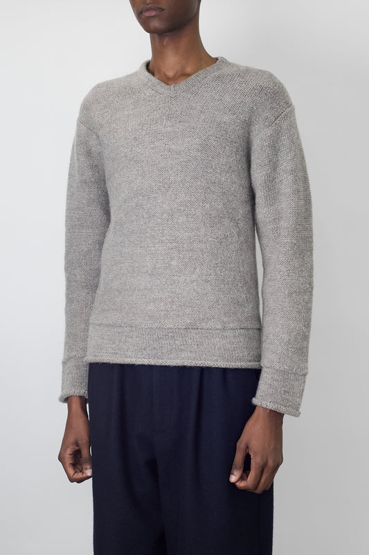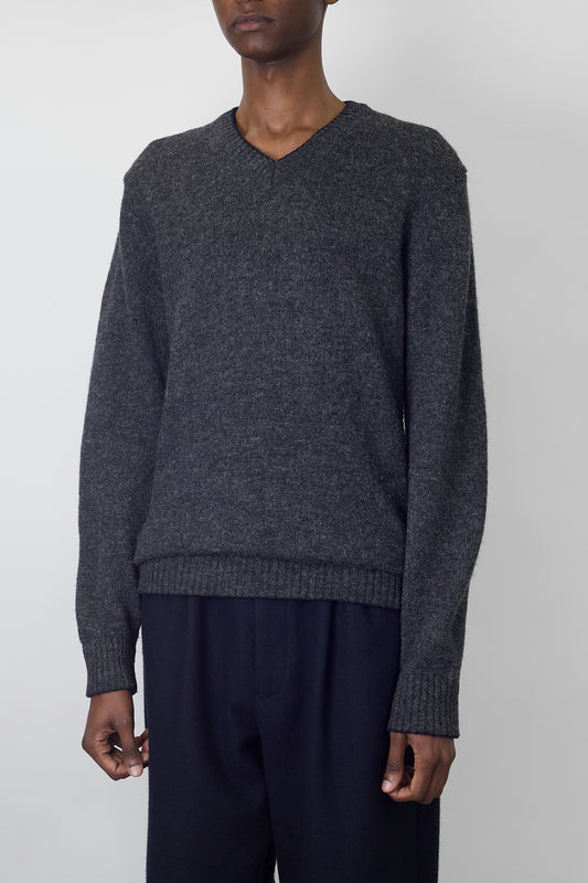 COMME DES GARCONS HOMME DESIGNED GRAY WOOL V NECK KNIT