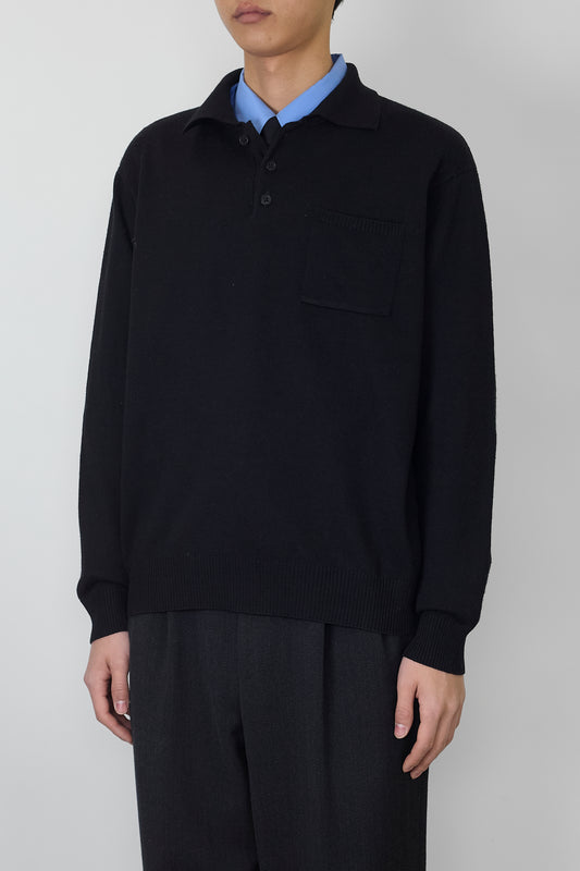 MISSON BLACK WOOL KNIT POLO SHIRT MADE IN SPAIN