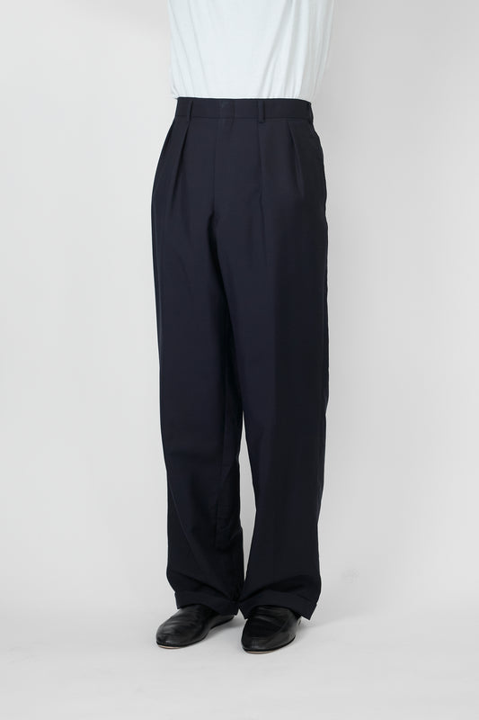 BURBERRYS NAVY WOOL WIDE PANTS MADE IN SPAIN