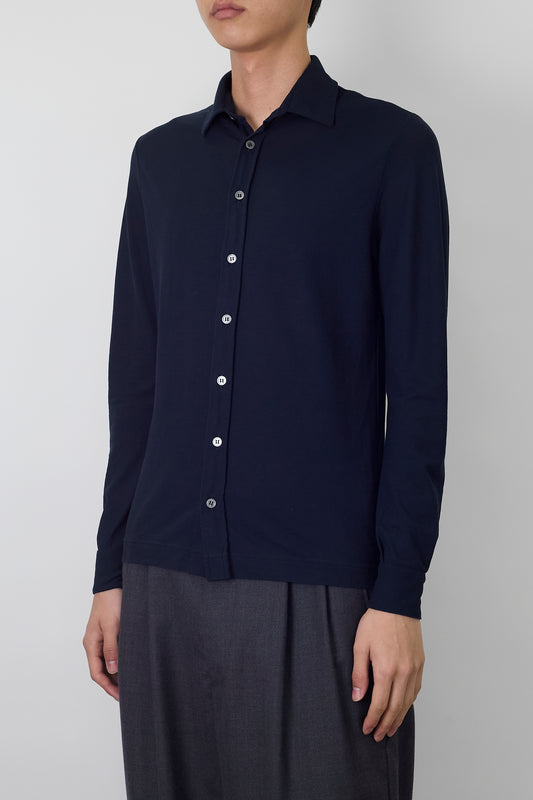 ZANONE NAVY COTTON KNIT SHIRT MADE IN ITALY