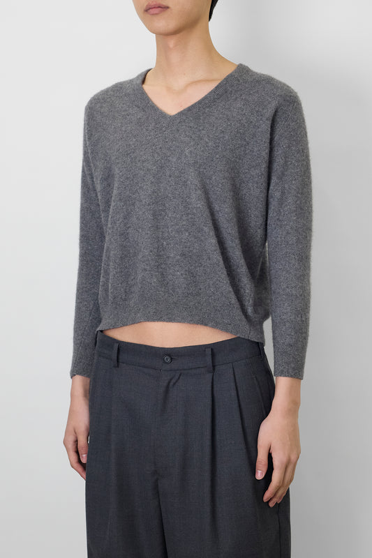 VINTAGE GRAY CASHMERE V NECK KNIT