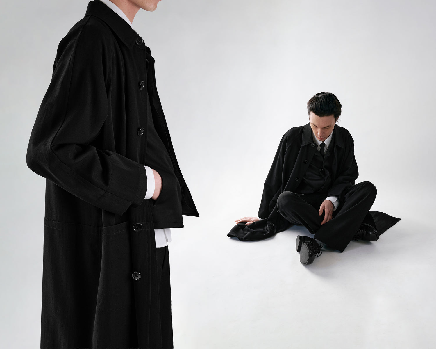COMME DES GARCONS HOMME FADED BLACK COTTON LONG COAT