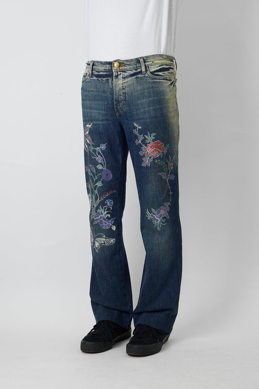 JUSTCAVALLI DESIGNED BLUE DENIM WIDE PANTS MADE IN ITALY