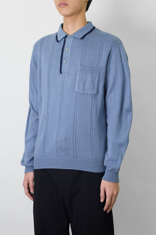 VINTAGE SKY BLUE WOOL KNIT POLO SHIRT