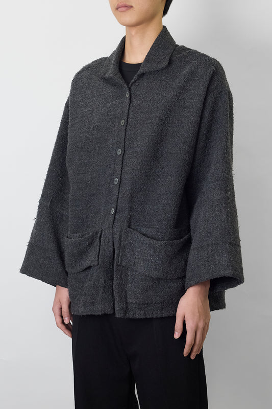 VINTAGE DESIGNED GRAY WOOL KNIT JACKET MADE IN FRANCE