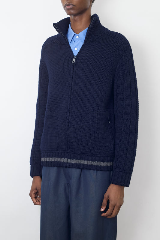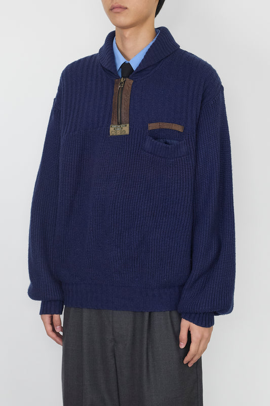 VINTAGE DESIGNED NAVY HALF ZIP KNIT