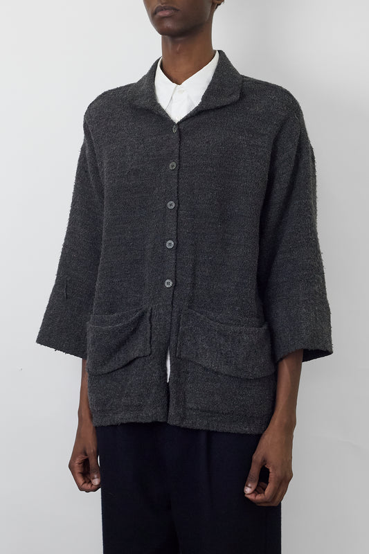 VINTAGE DESIGNED GRAY WOOL KNIT JACKET MADE IN FRANCE