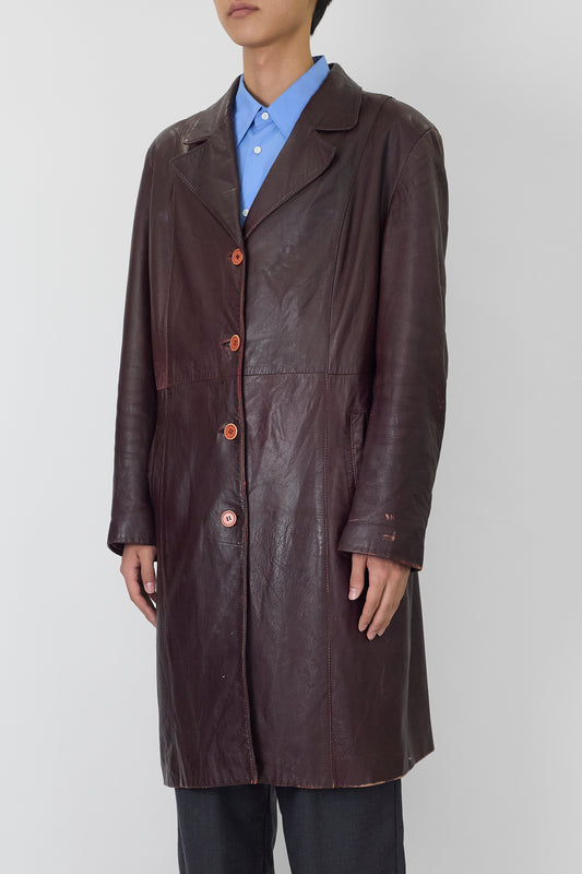 VINTAGE BURGUNDY LEATHER LONG COAT