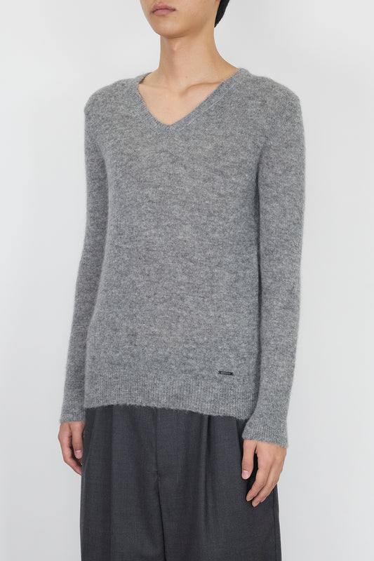 BURBERRY GRAY WOOL ALPACA V NECK KNIT