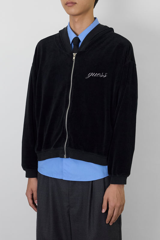 GUESS CROPPED BLACK COTTON ZIP UP HOODIE