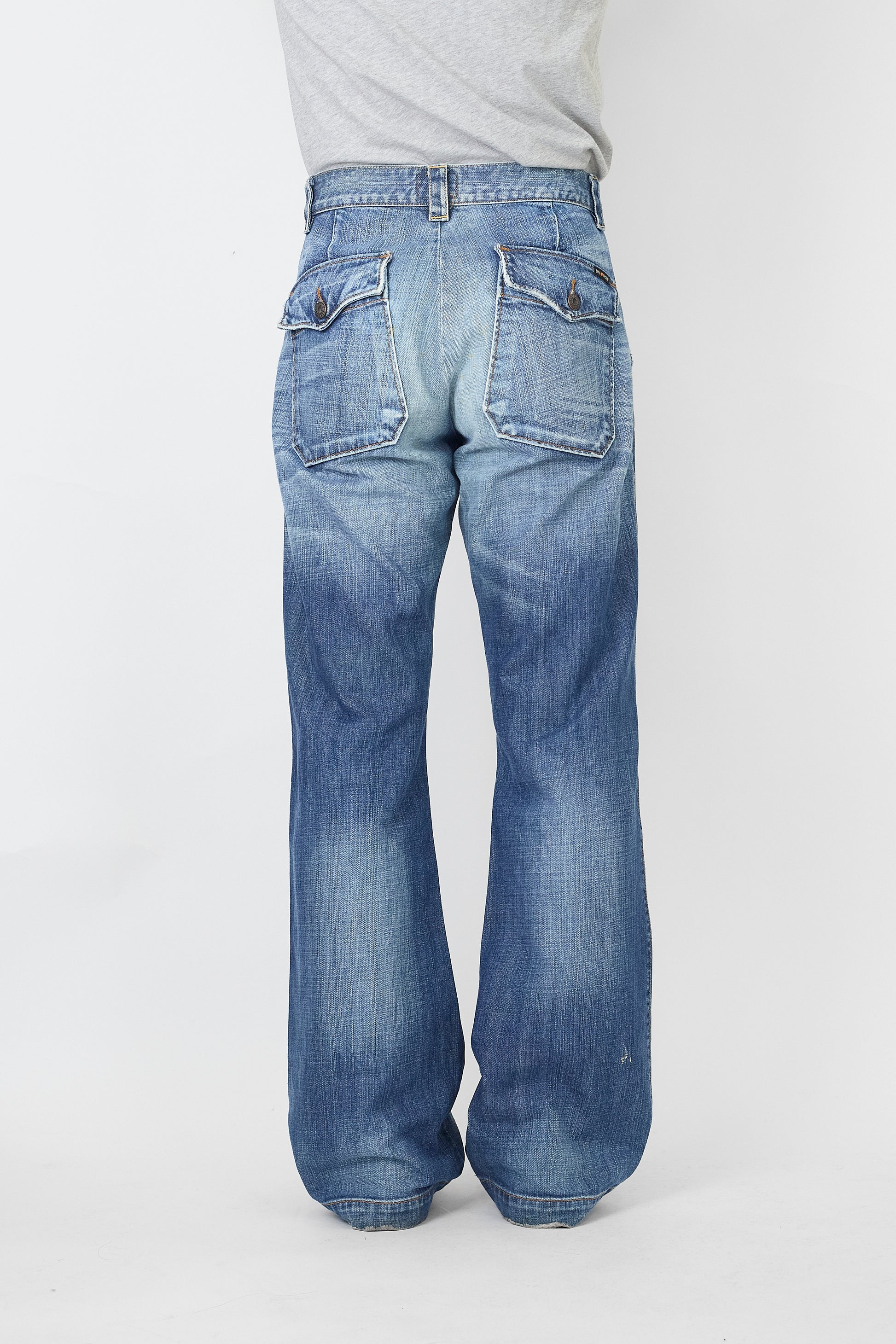 VINTAGE BLUE DENIM WIDE PANTS MADE IN ITALY