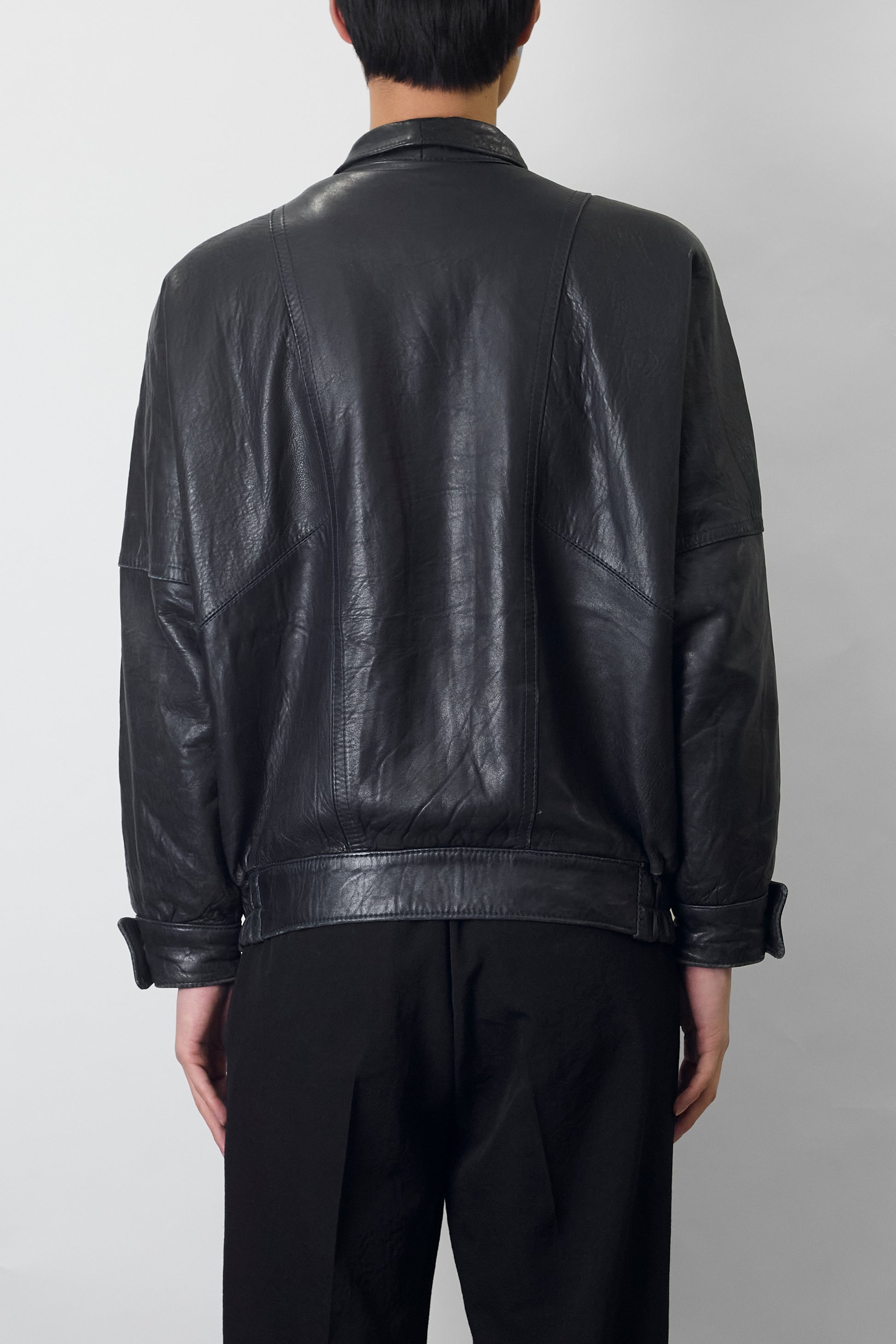 VINTAGE NAVY LEATHER SHORT JACKET MADE IN SPAIN