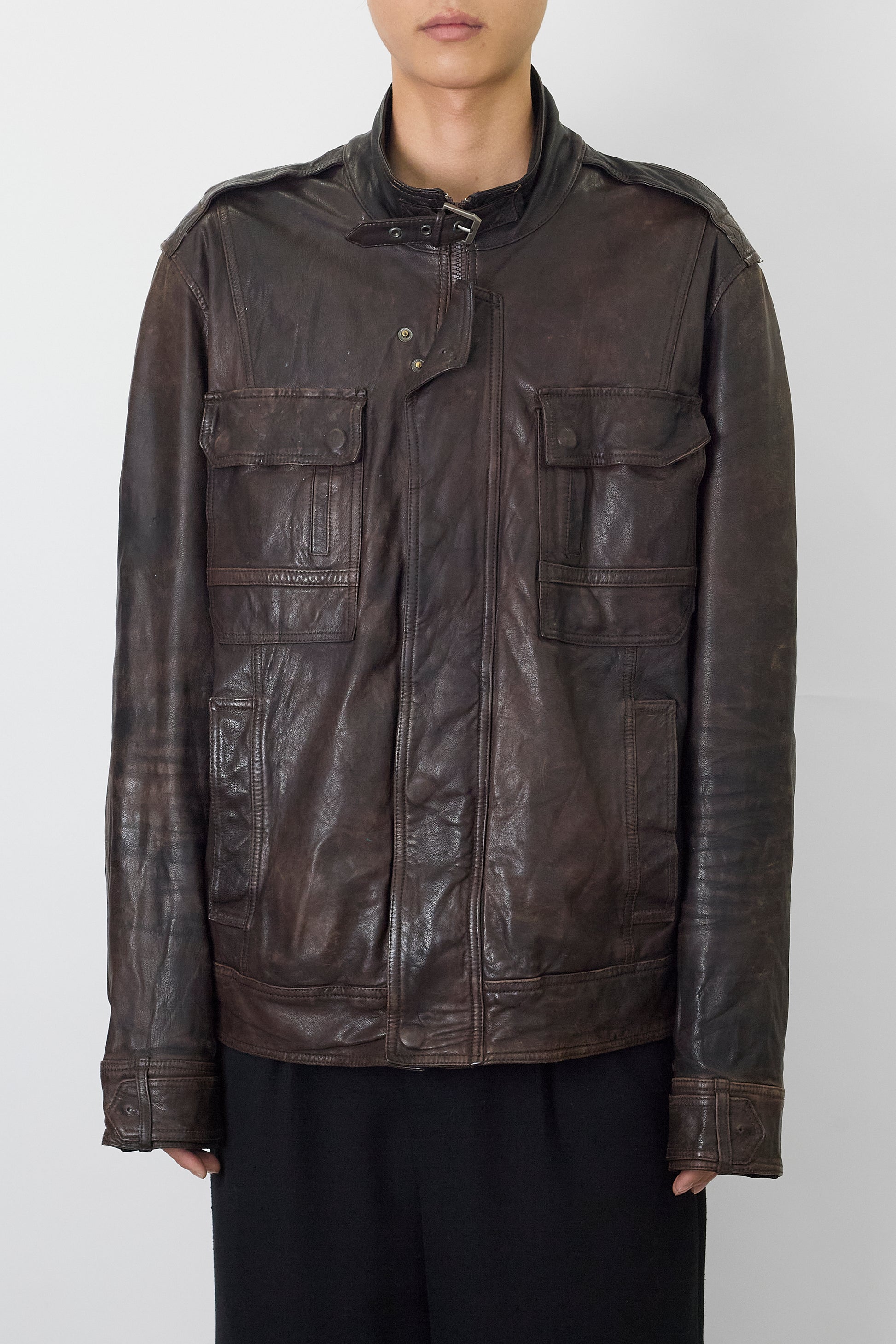 DOLCE&GABBANA BRAWN LEATHER JACKET MADE IN ITALY