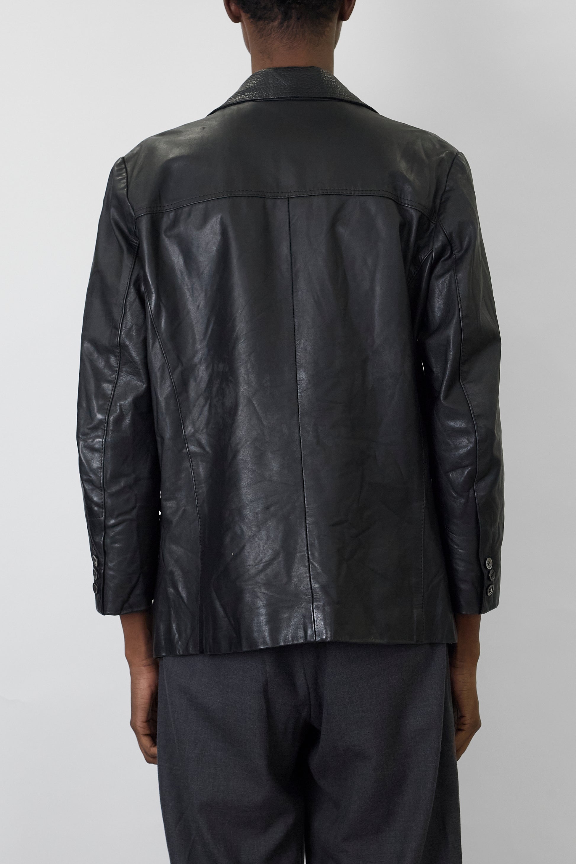 VINTAGE BLACK LEATHER TAILORED JACKET