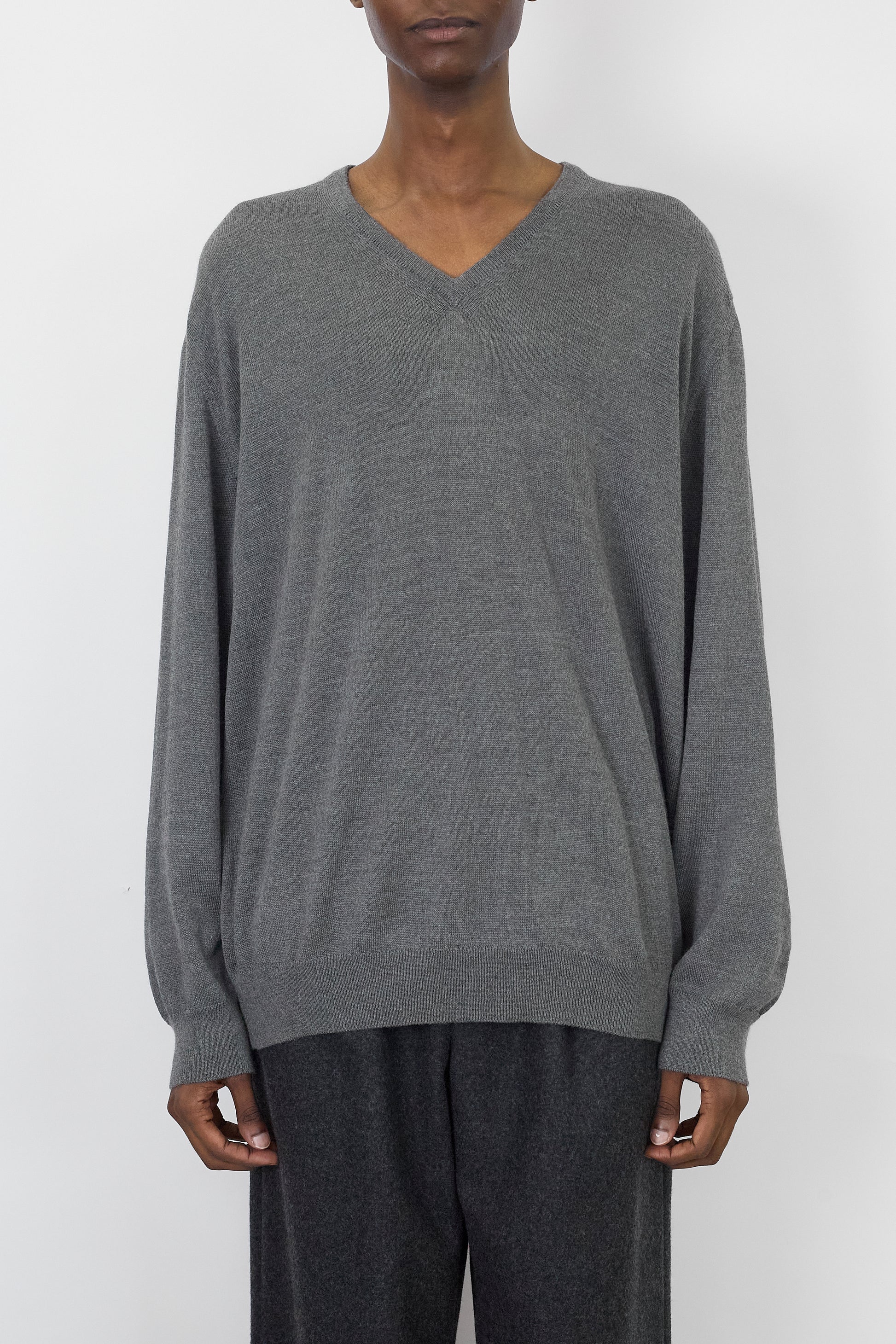 VINTAGE LIGHT GRAY V NECK KNIT MADE IN SPAIN