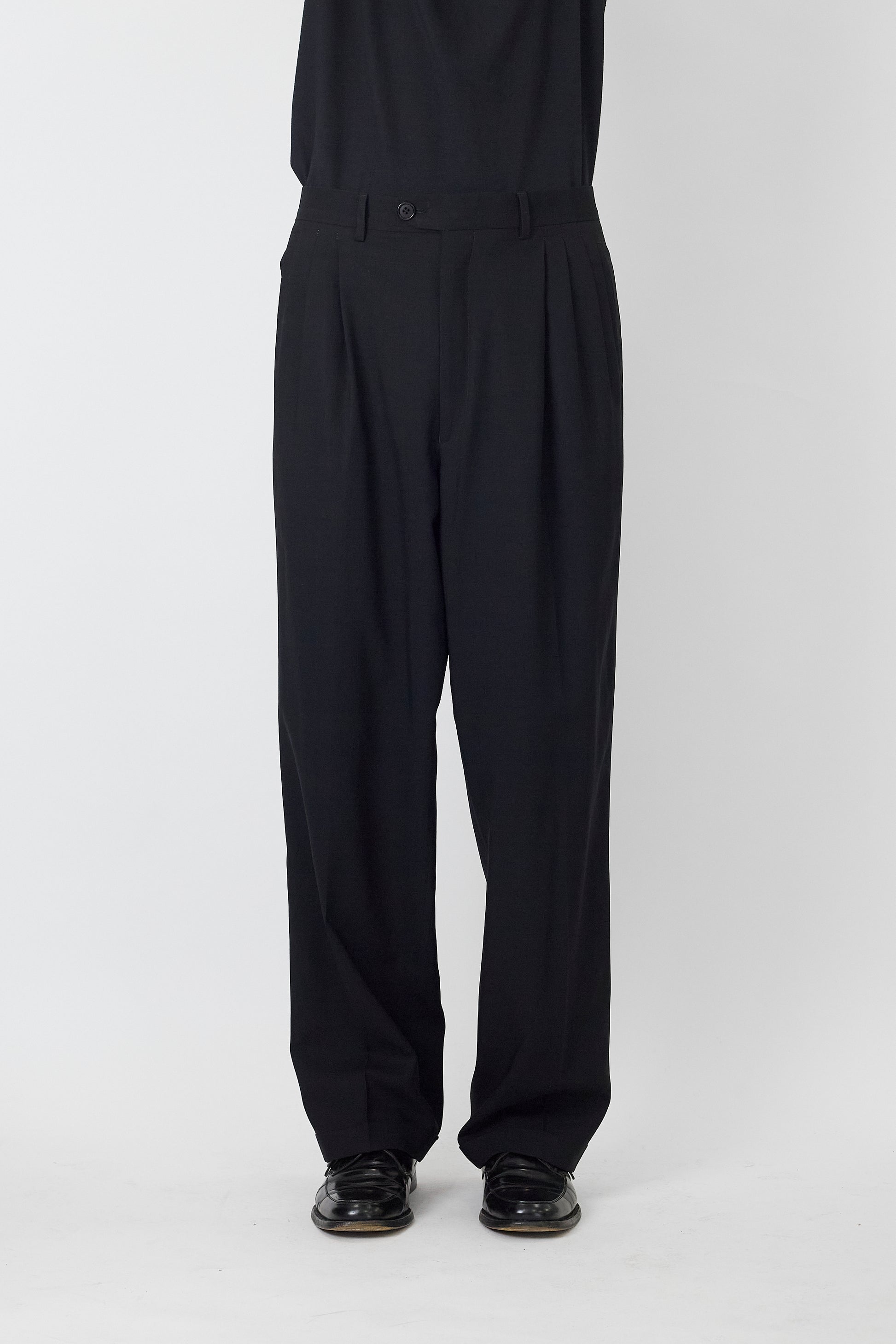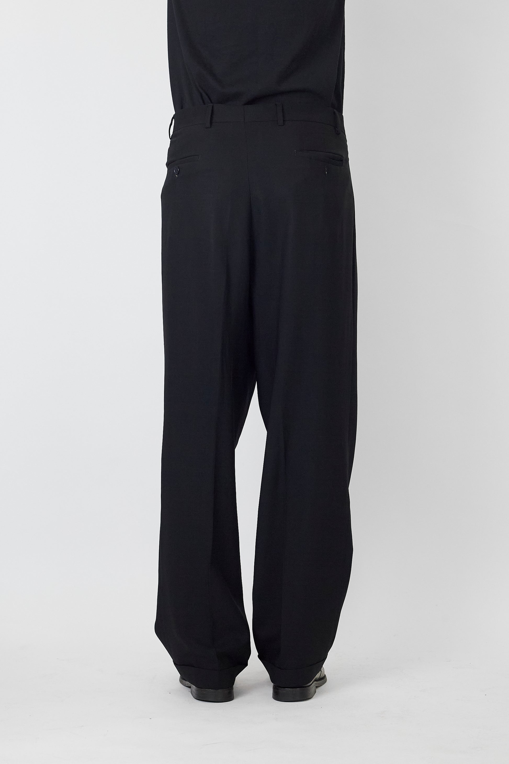 ZANETTI BLACK WOOL WIDE PANTS MADE IN ITALY